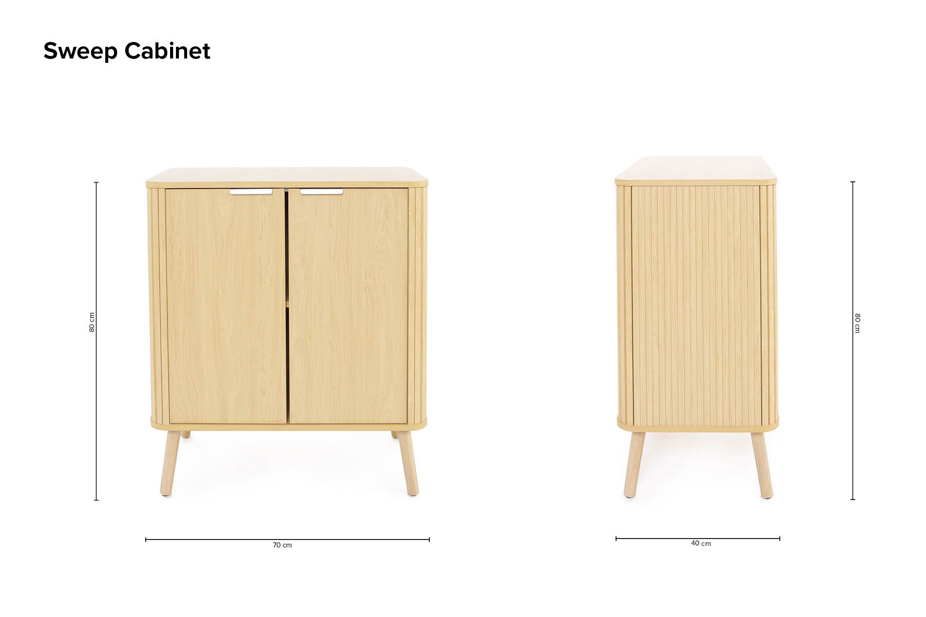 Compact yet functional, the Sweep Cabinet is perfect for hallways, living rooms, or bedrooms, offering timeless style with practical storage.