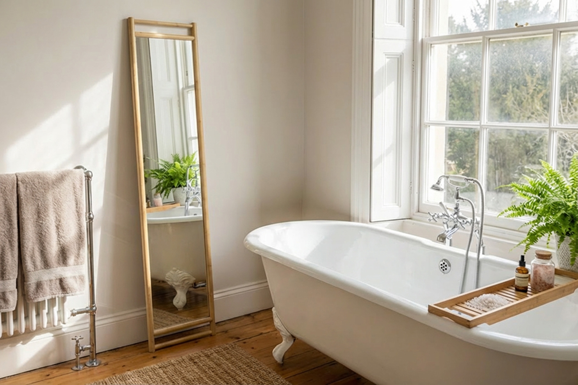 Space-saving cleverness at its best, this marvellous bamboo mirror comes fully assembled and ready to set it up straight away.