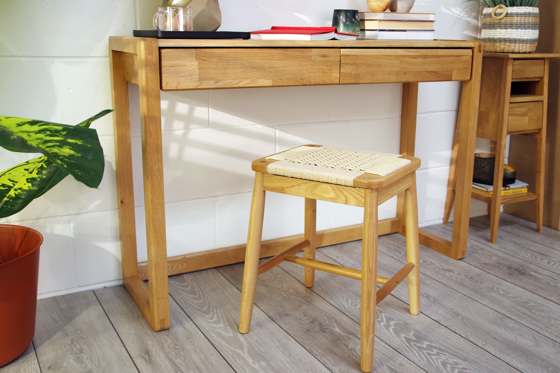 Made from solid ash, with a woven paper corded seat this stool is a perfect balance of form and function.