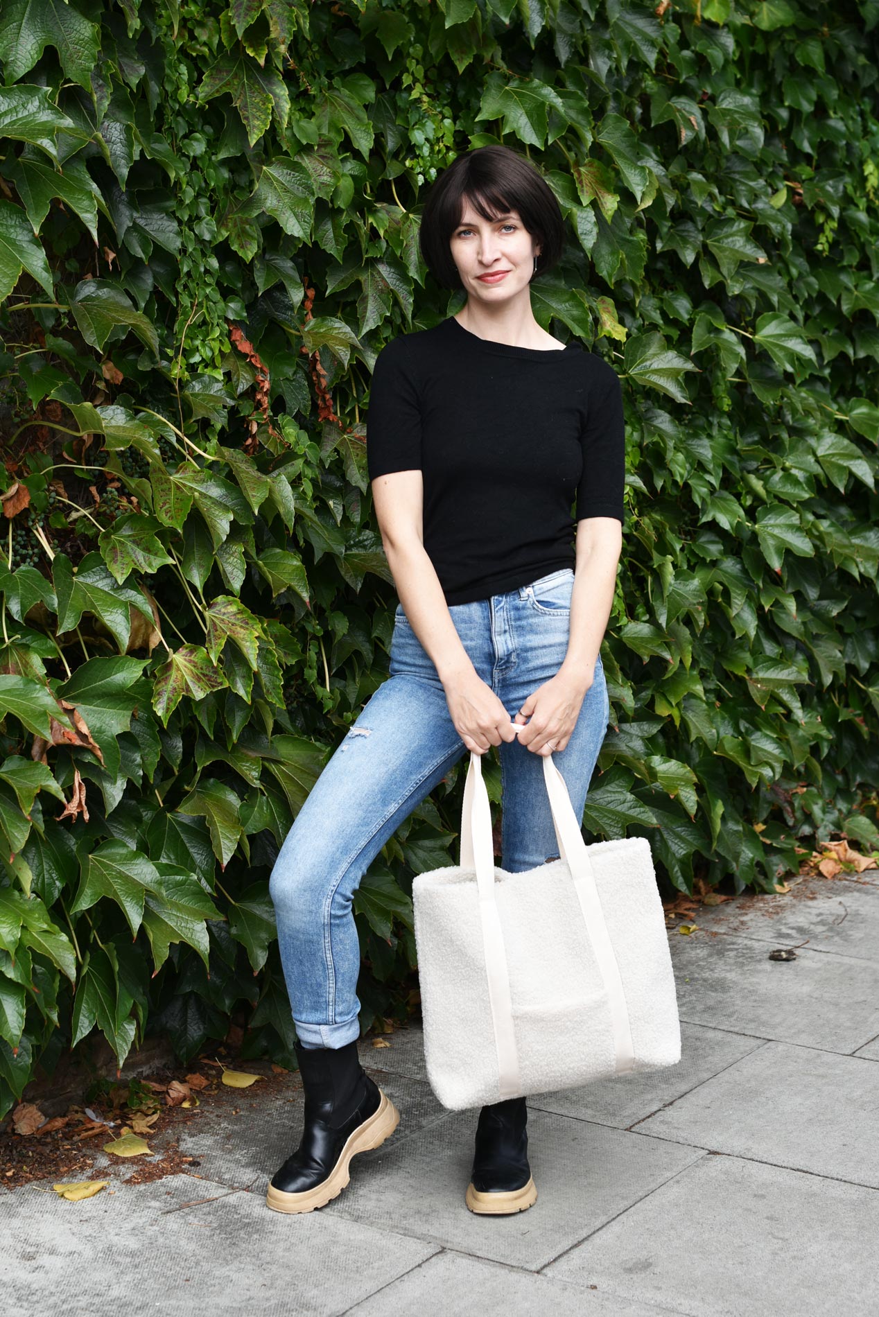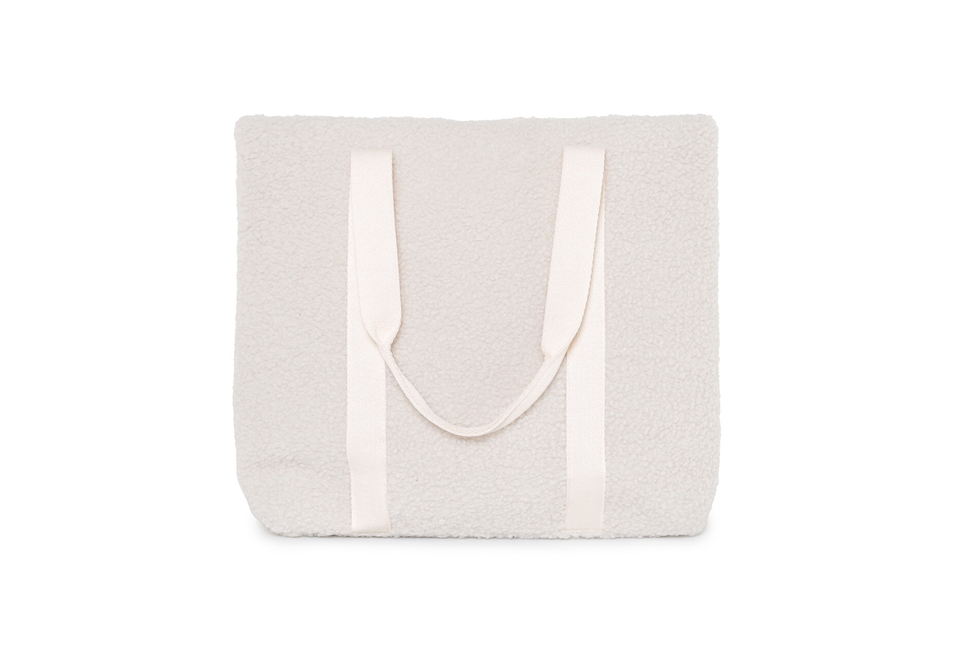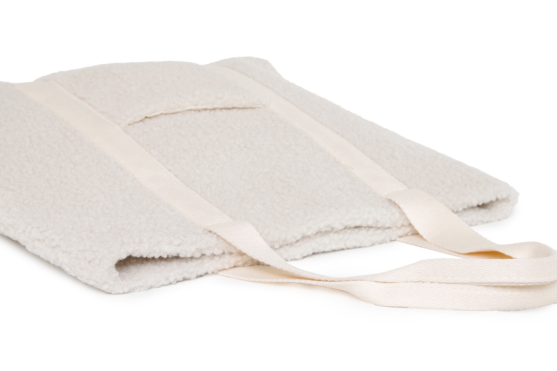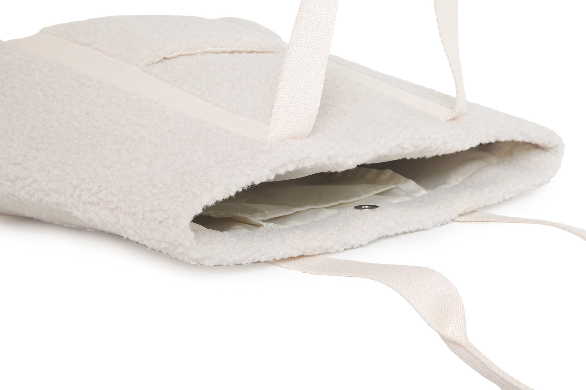 Crafted in a soft natural-toned fleece, this tote combines warmth and texture with everyday practicality.