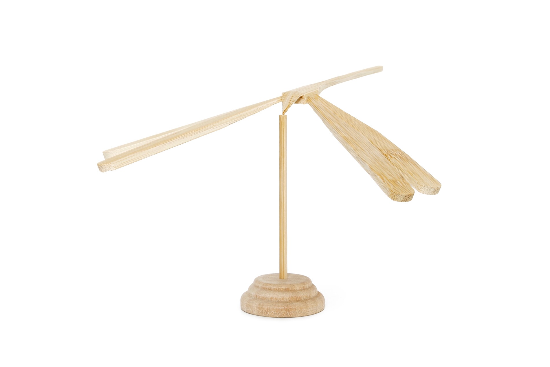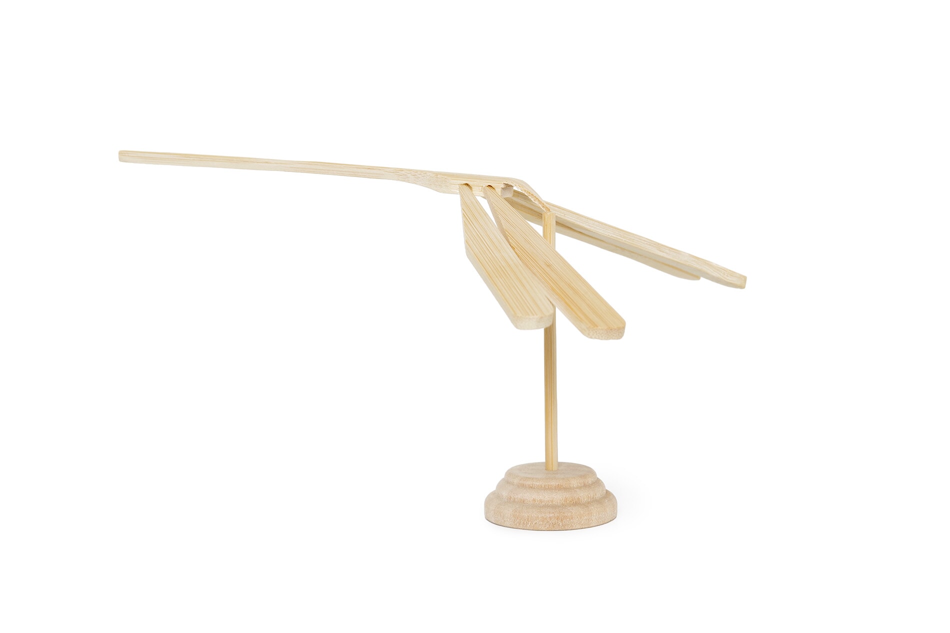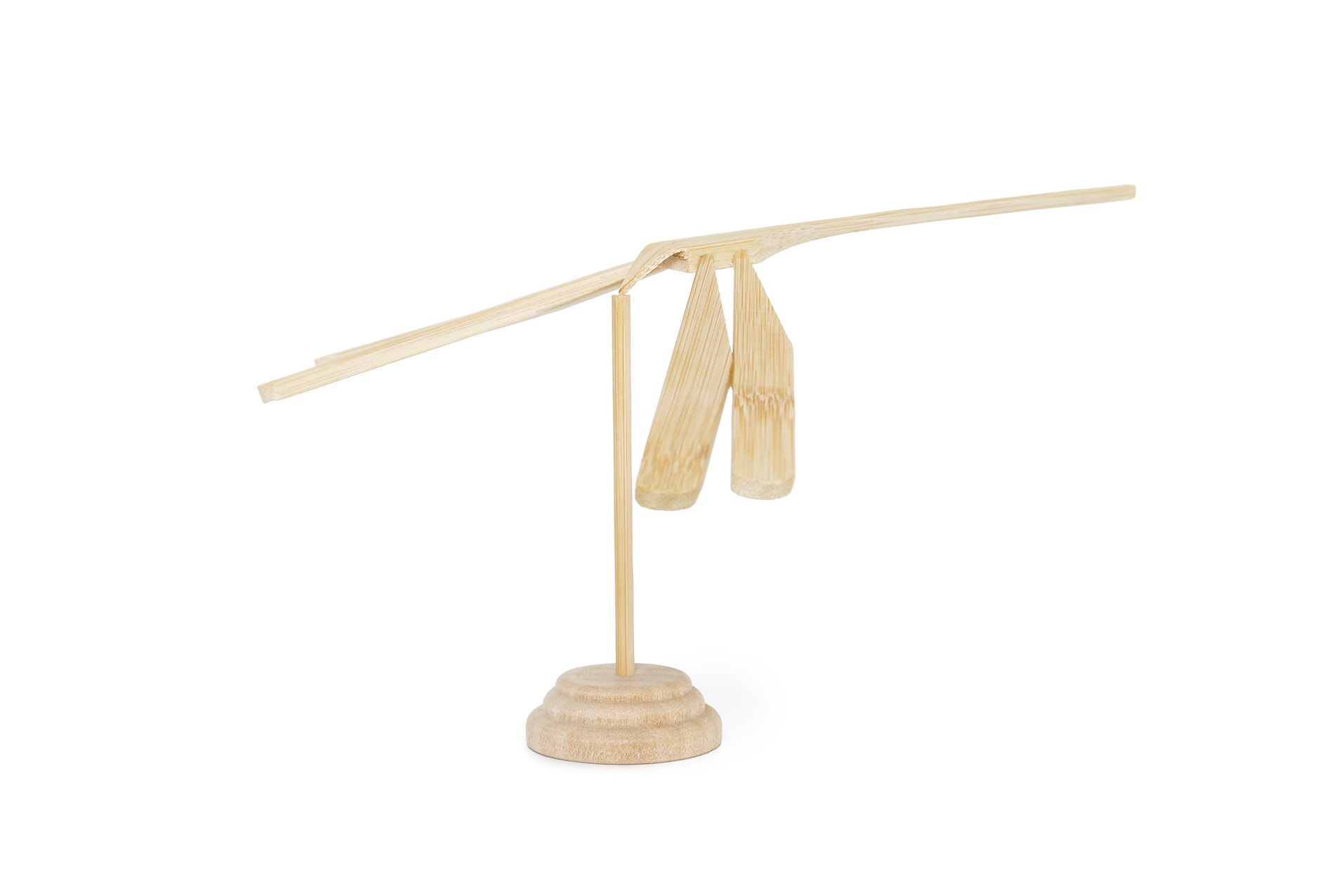 Crafted from bamboo, this sculptural mobile is designed to balance gracefully on its perch.