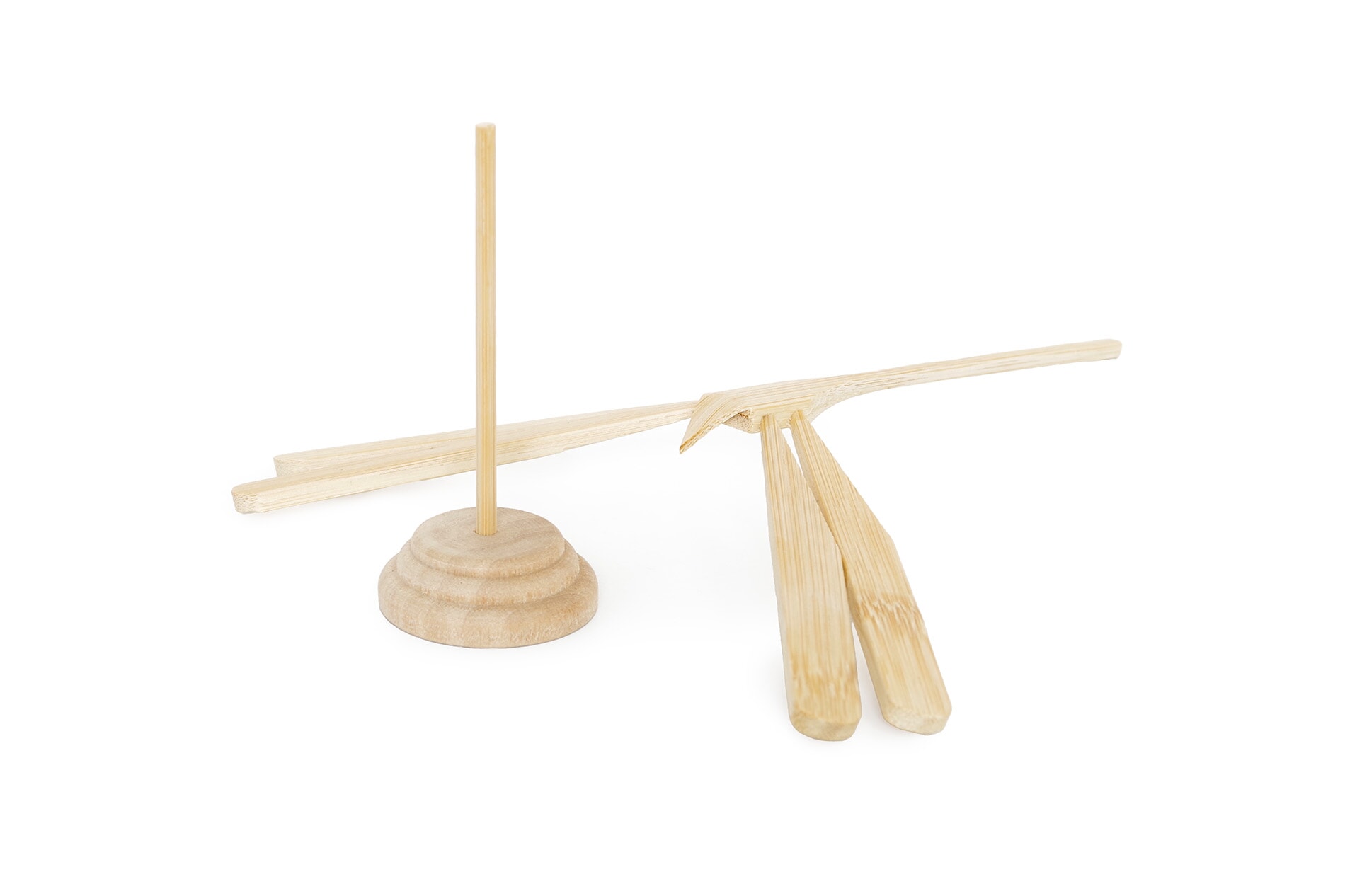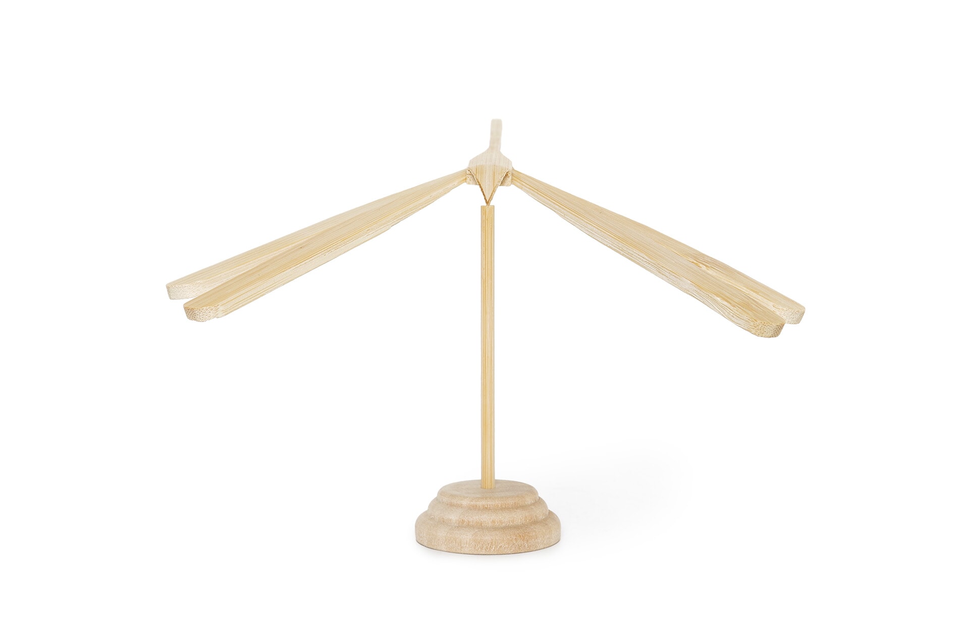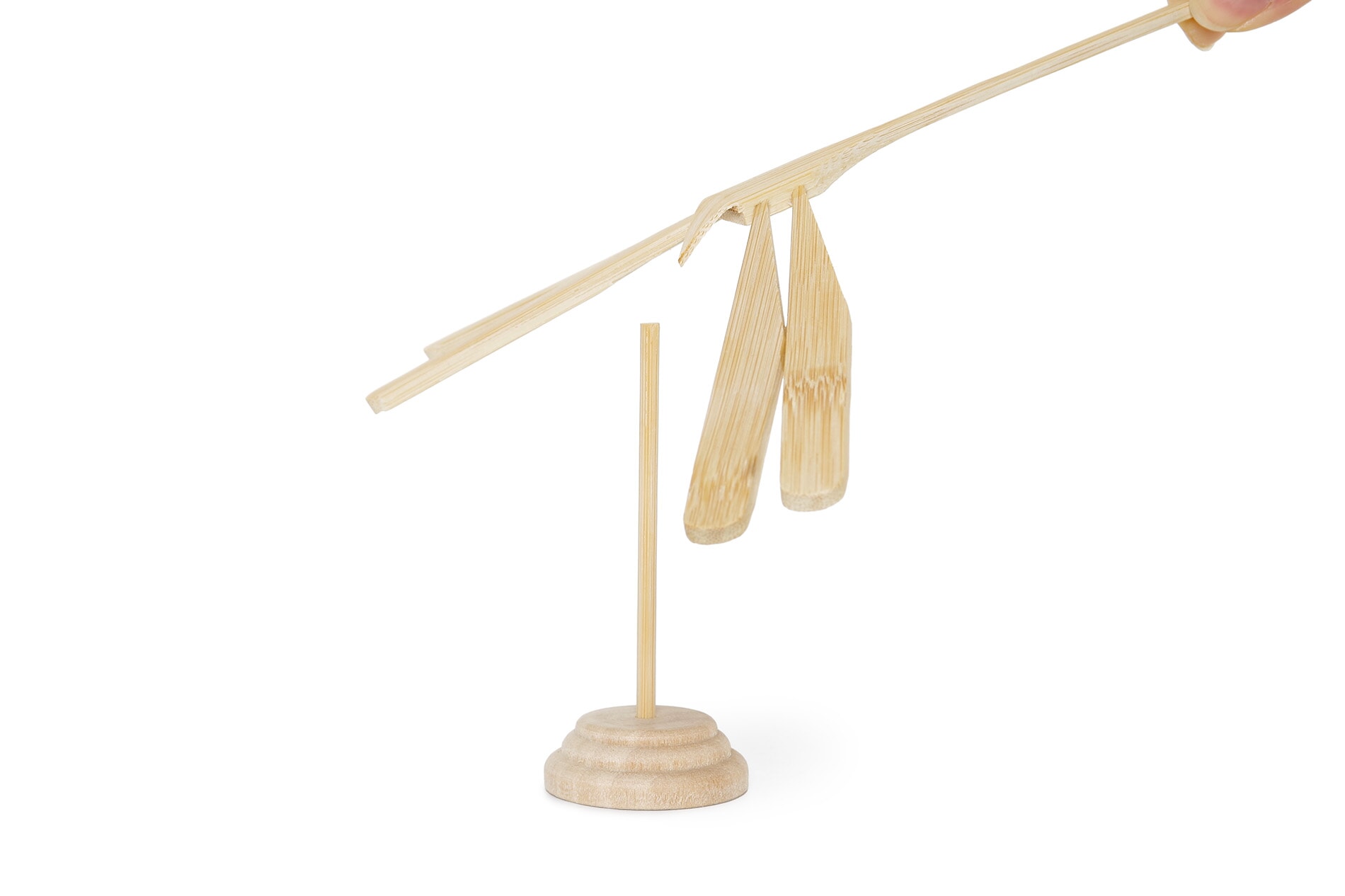 Crafted from bamboo, this sculptural mobile is designed to balance gracefully on its perch.