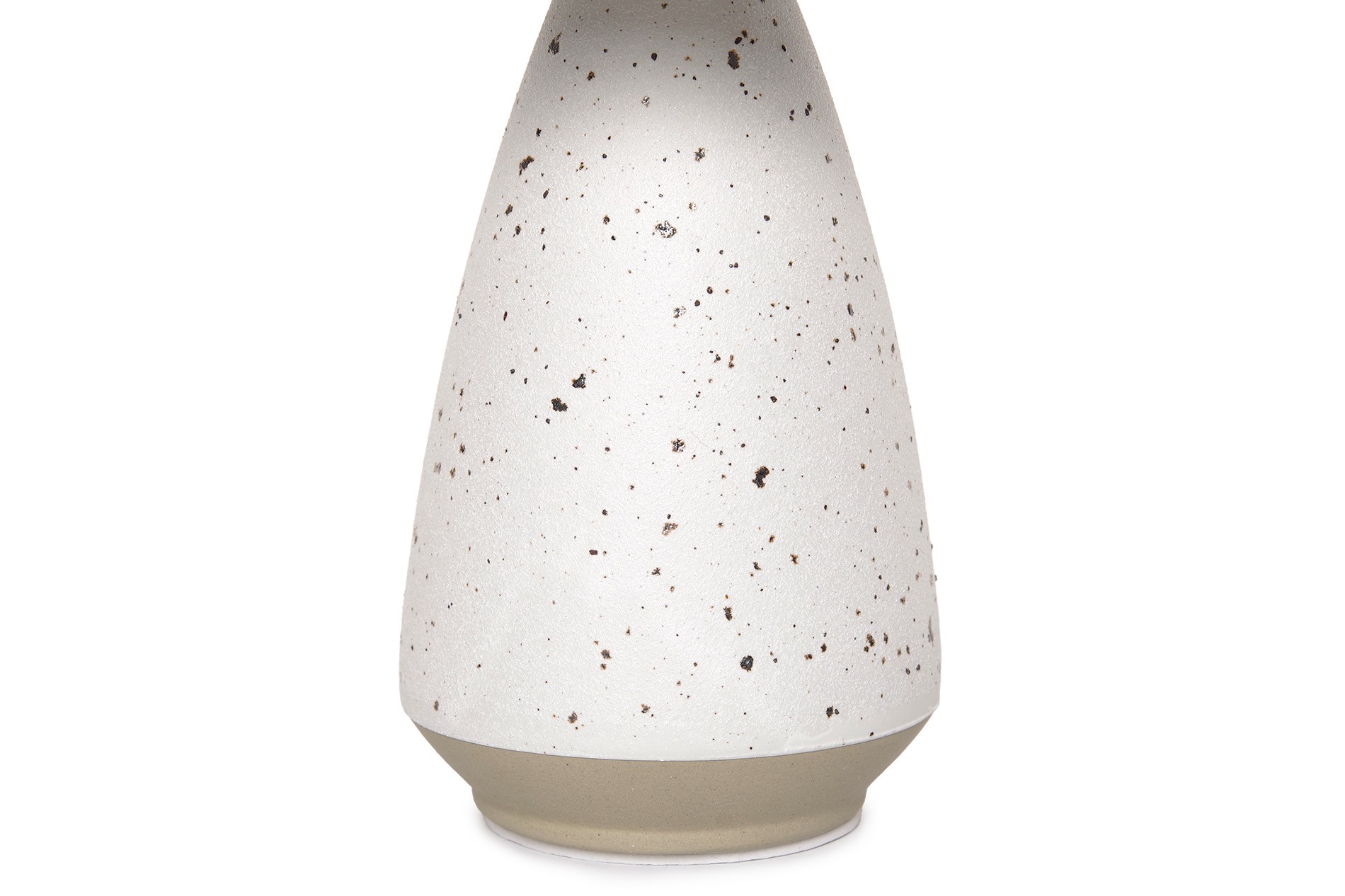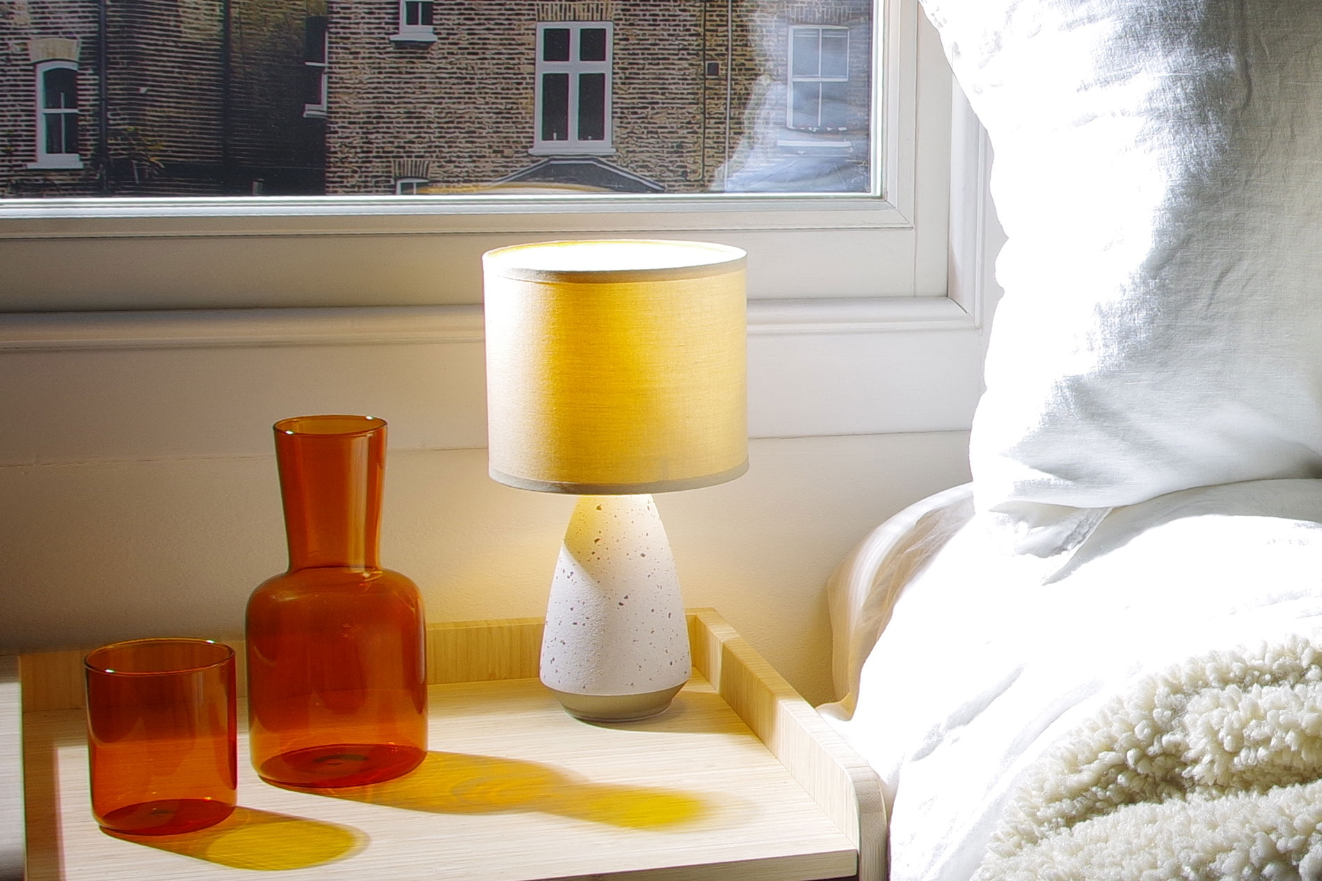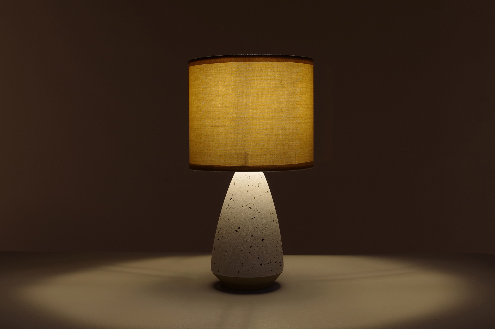 Complementing the cotton shade is a porcelain base, providing a striking contrast to the organic texture of the shade.