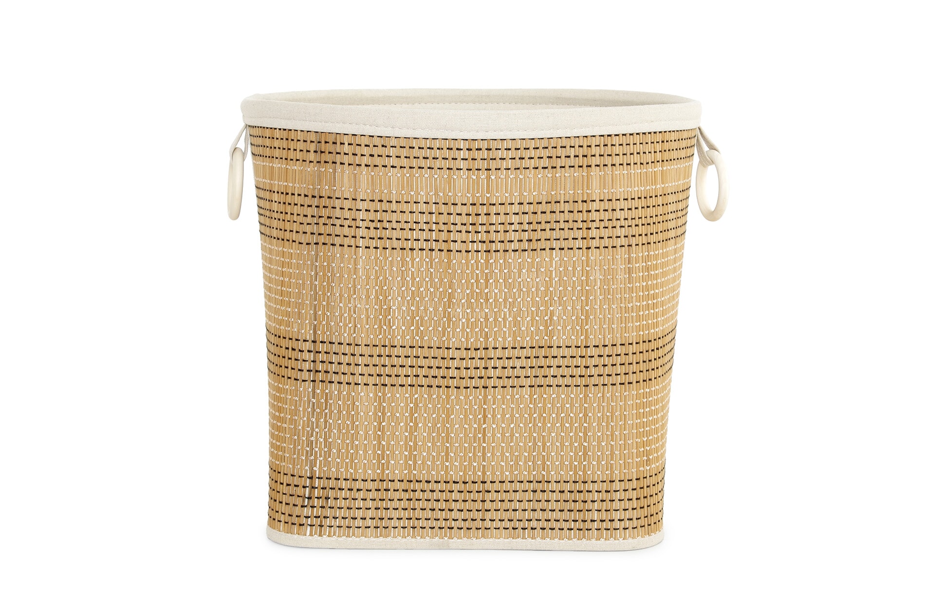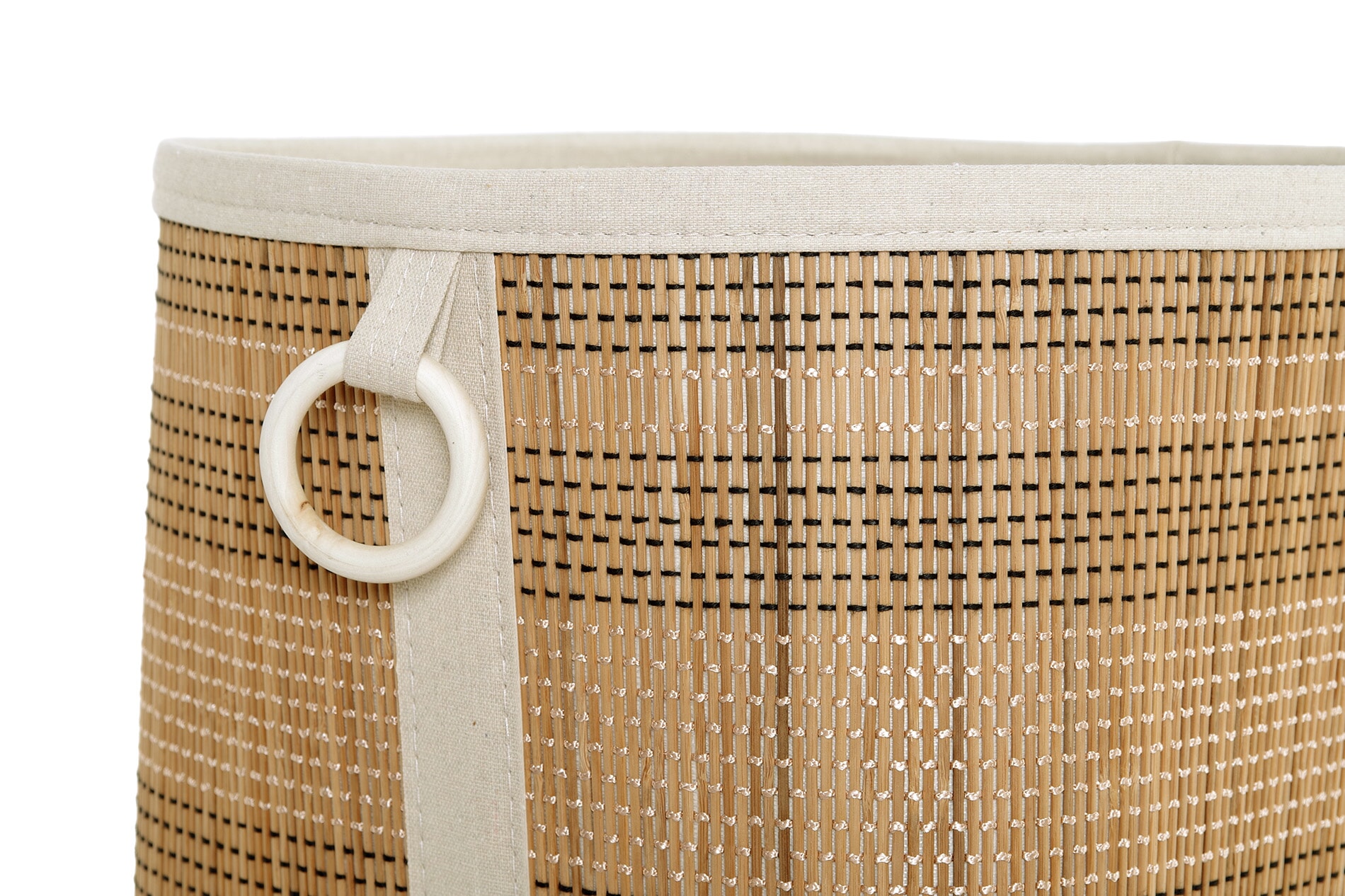 Meticulously crafted from bamboo & fabric, this basket exudes warmth and organic beauty. The addition of wooden handles and a material lining elevates its functionality, making it a versatile and stylish storage solution for your home.