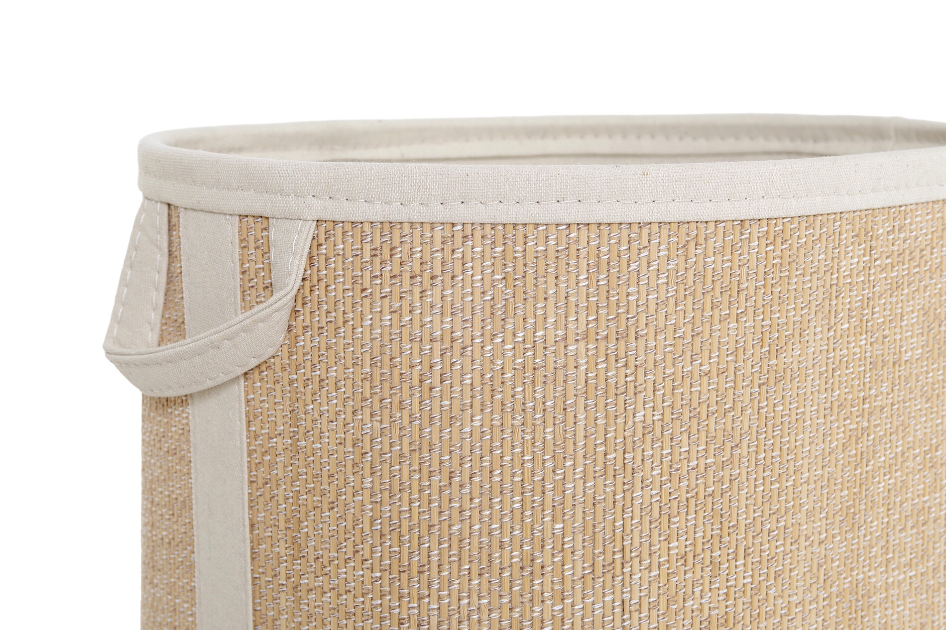 Meticulously crafted from bamboo & natural trim, this basket exudes warmth and organic beauty. The addition of handles and a material lining elevates its functionality, making it a versatile and stylish storage solution for your home.