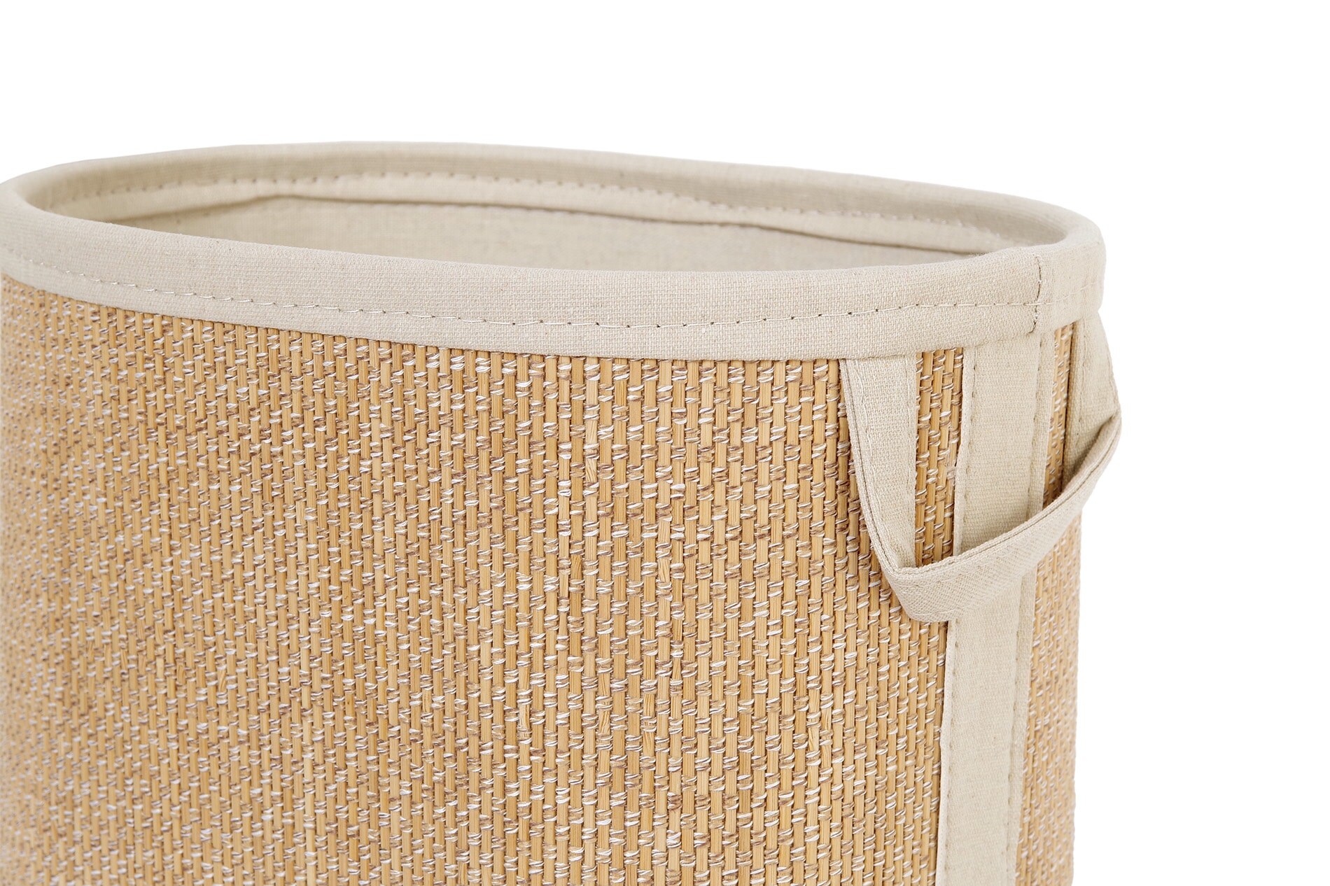 Meticulously crafted from bamboo & natural trim, this basket exudes warmth and organic beauty. The addition of handles and a material lining elevates its functionality, making it a versatile and stylish storage solution for your home.