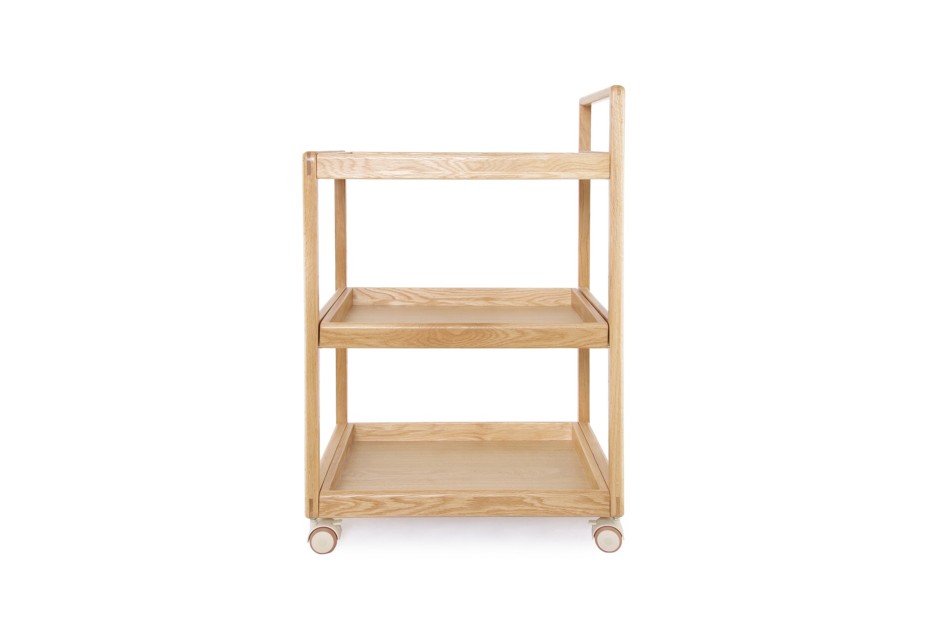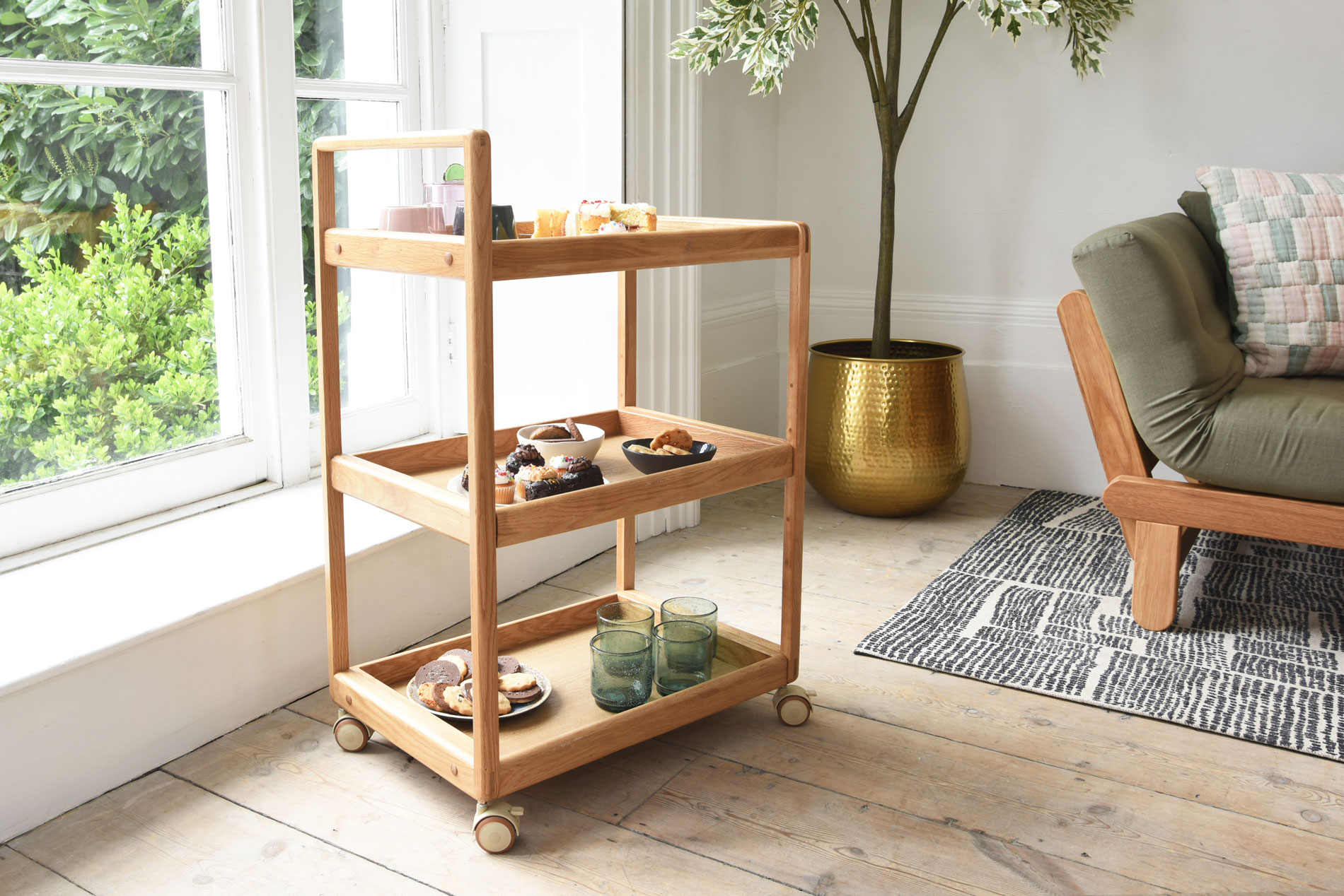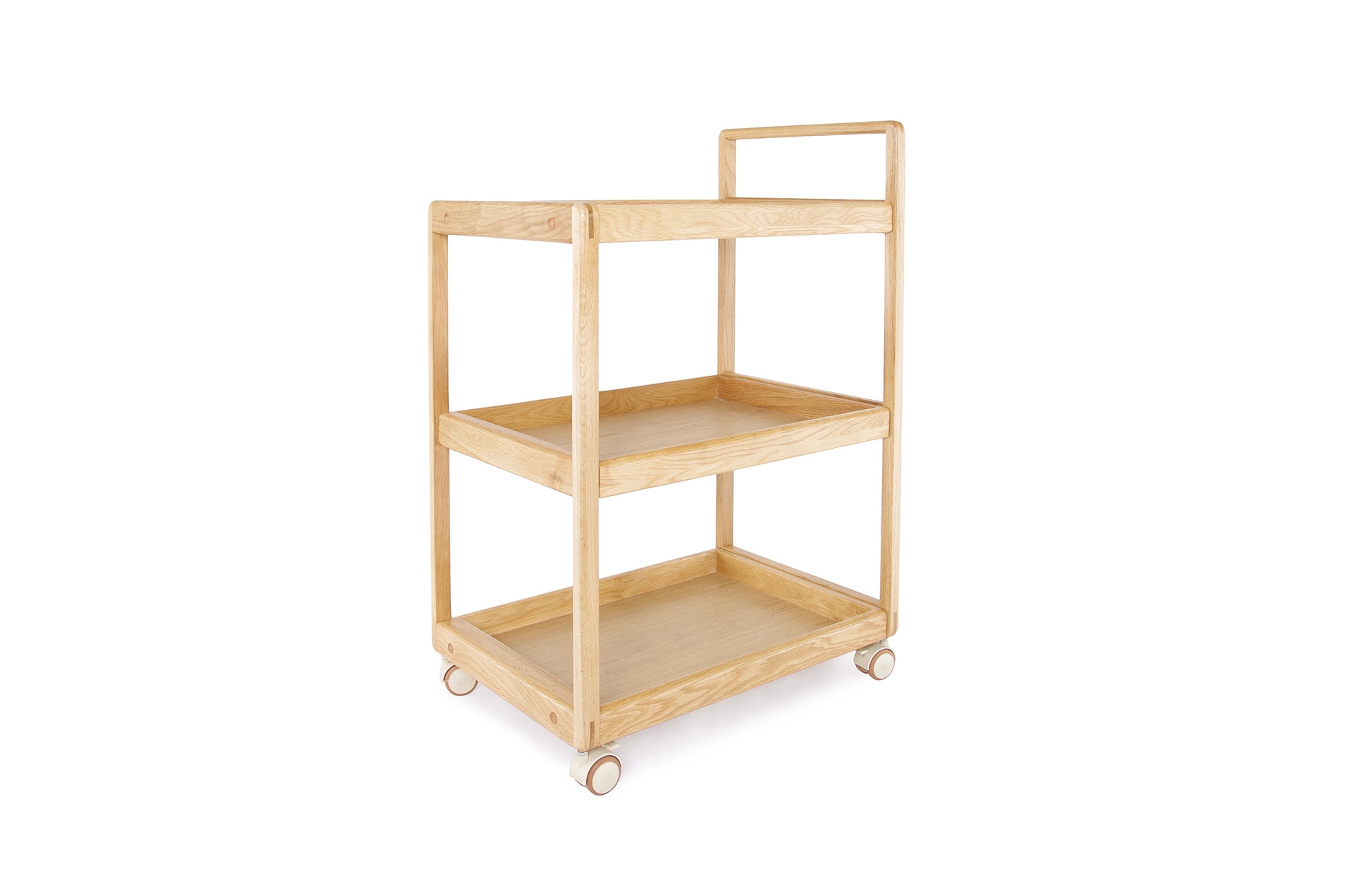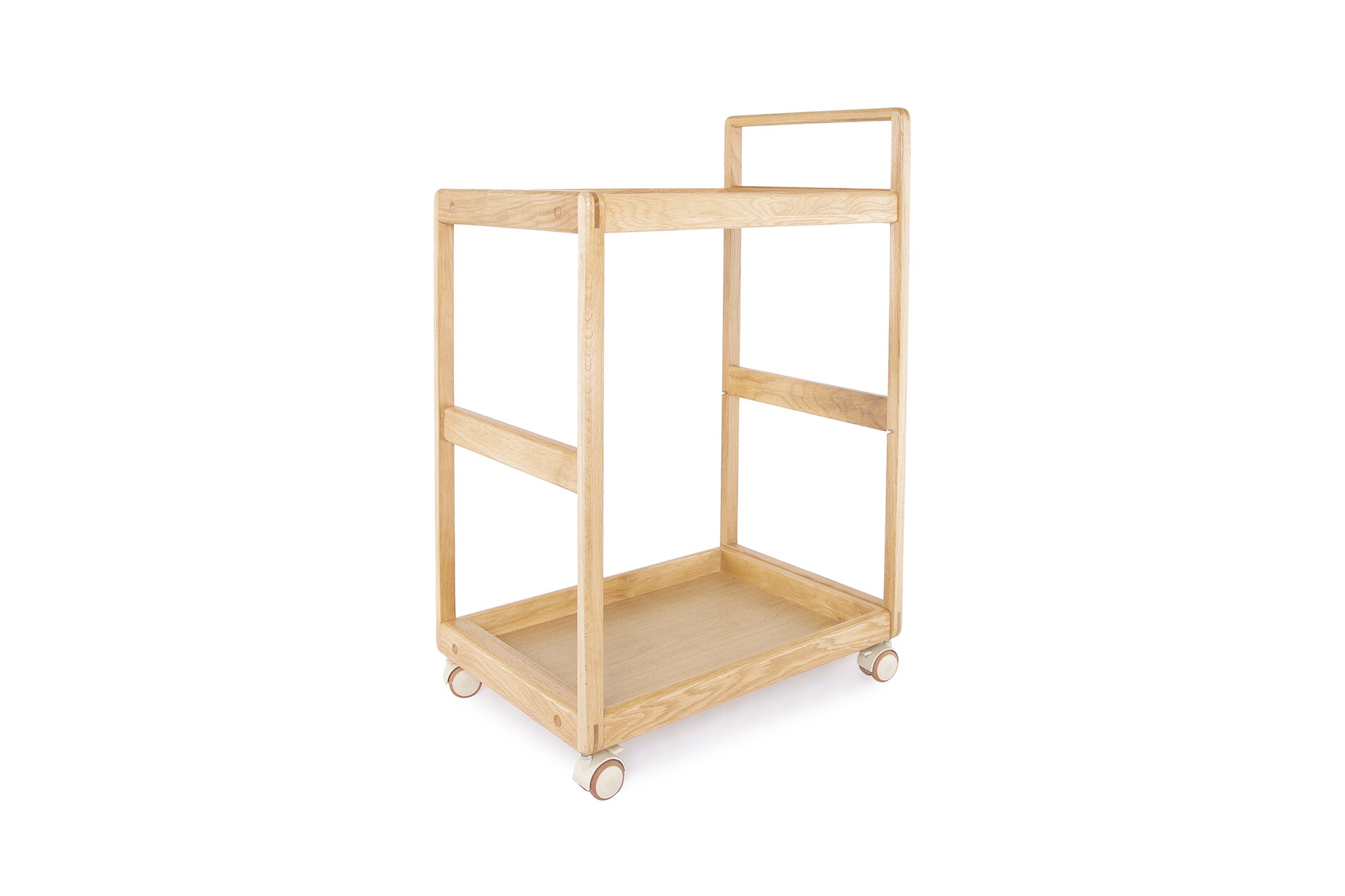 The Loop Oak Trolley is a versatile storage and serving piece designed for everyday flexibility.