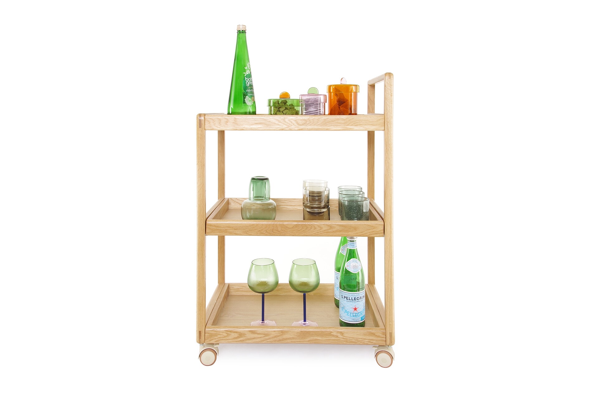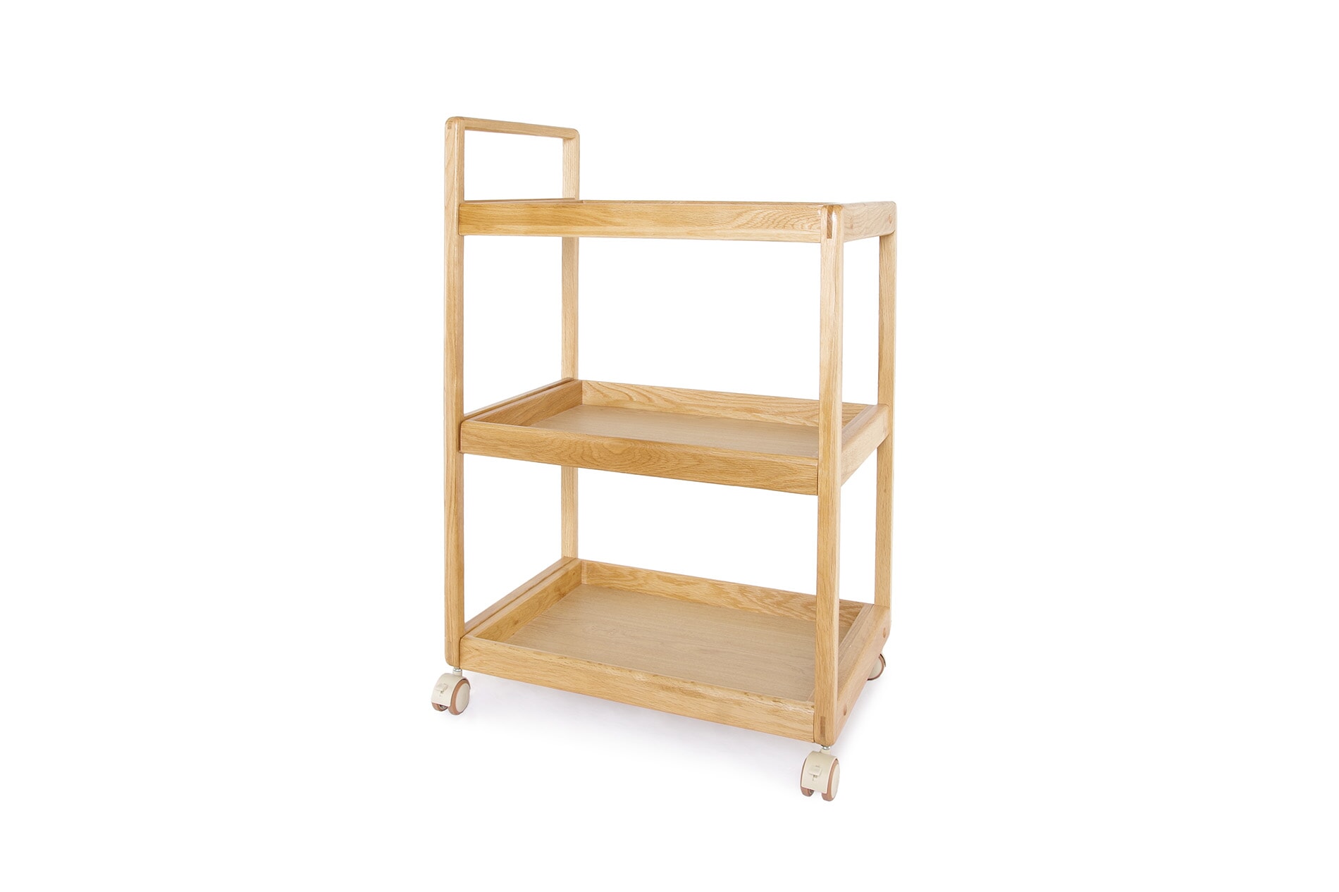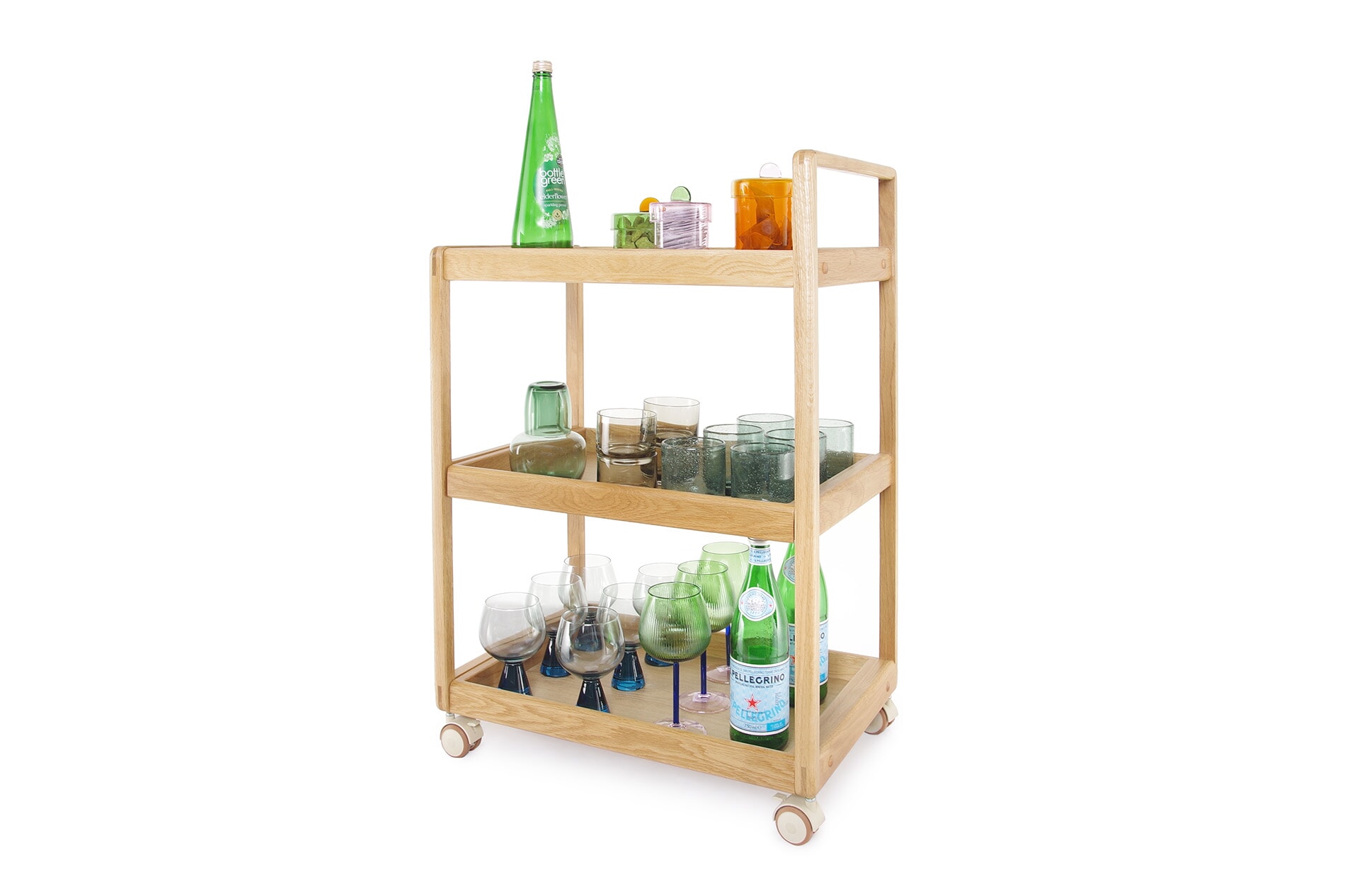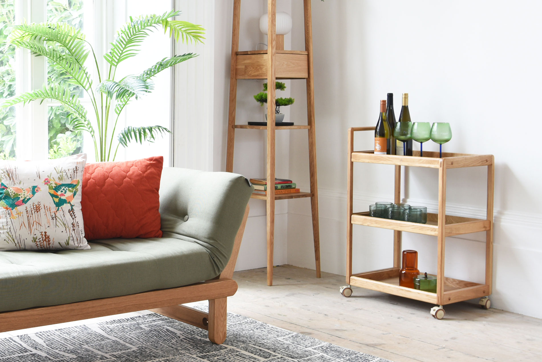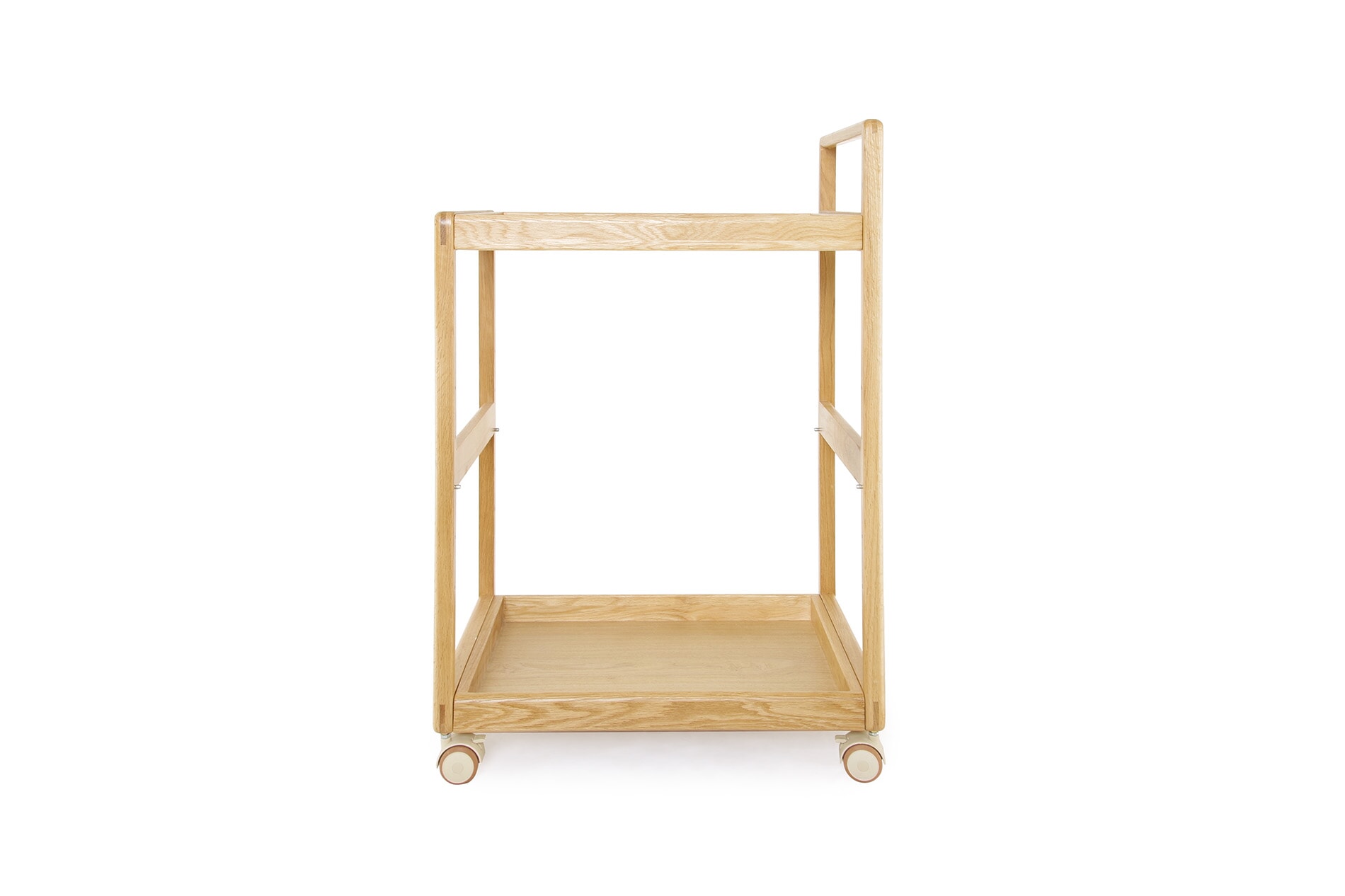 The Loop Oak Trolley is a versatile storage and serving piece designed for everyday flexibility.