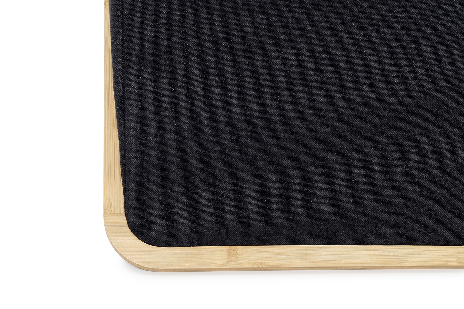 Made from fabric with a sturdy bamboo frame, this hamper brings a modern touch to your home.