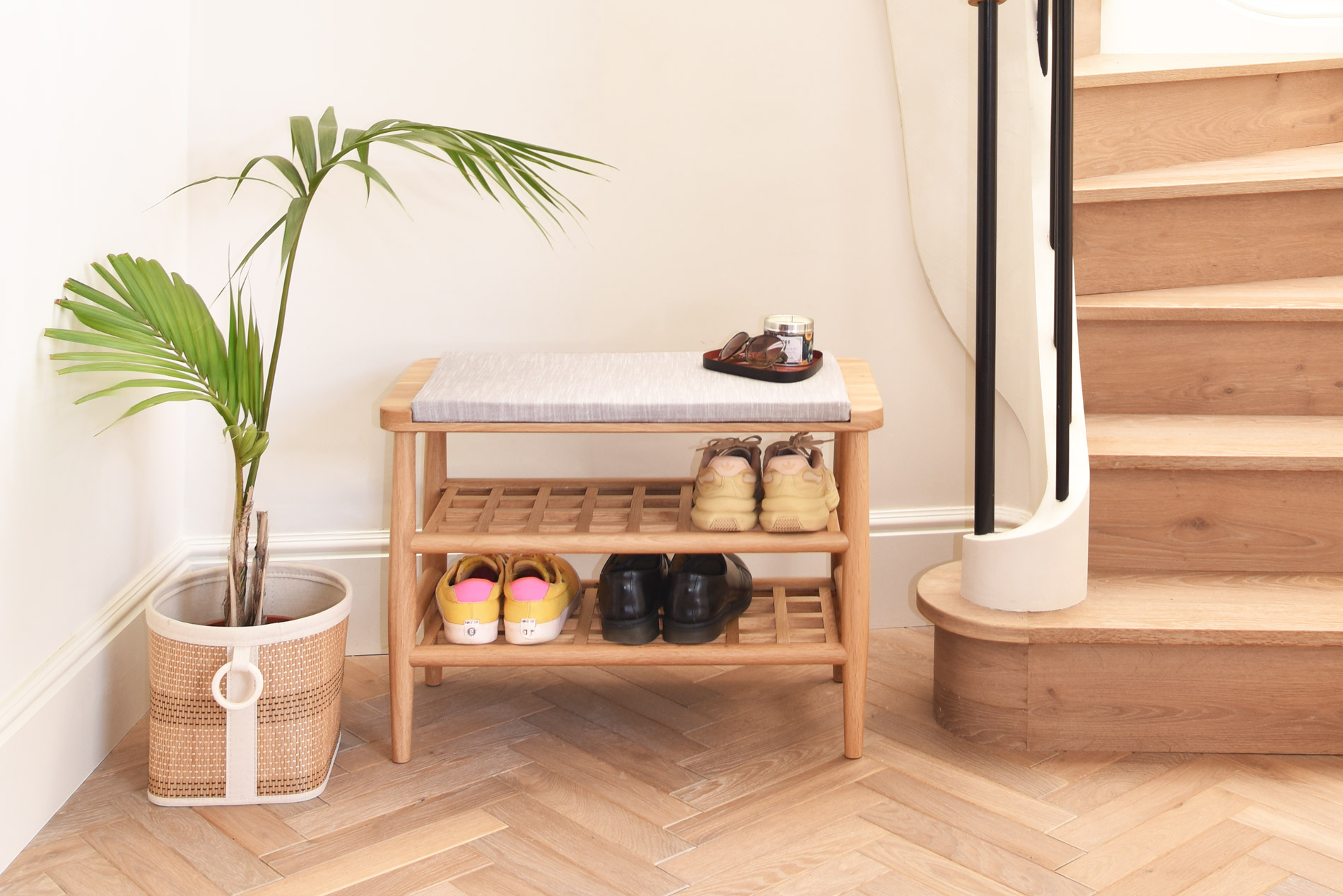 It’s time to take the hot seat! Cleverly combining a carefully crafted hallway seat with sleek shelves, this space saving storage solution is twice as nice.