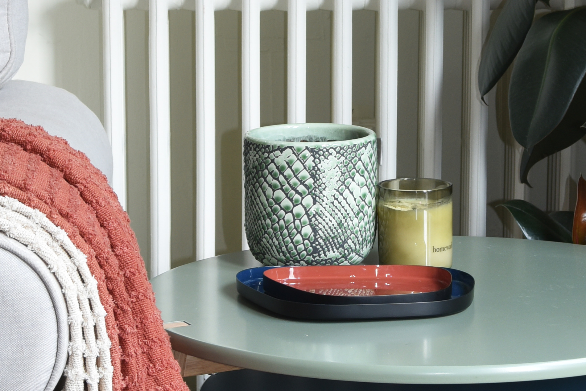 A smart metal tray with matt black on the outside and an enamelled colour on the inside, this modern marvel brings a new meaning to 'in tray' and is ideally designed to collate and store possessions.
