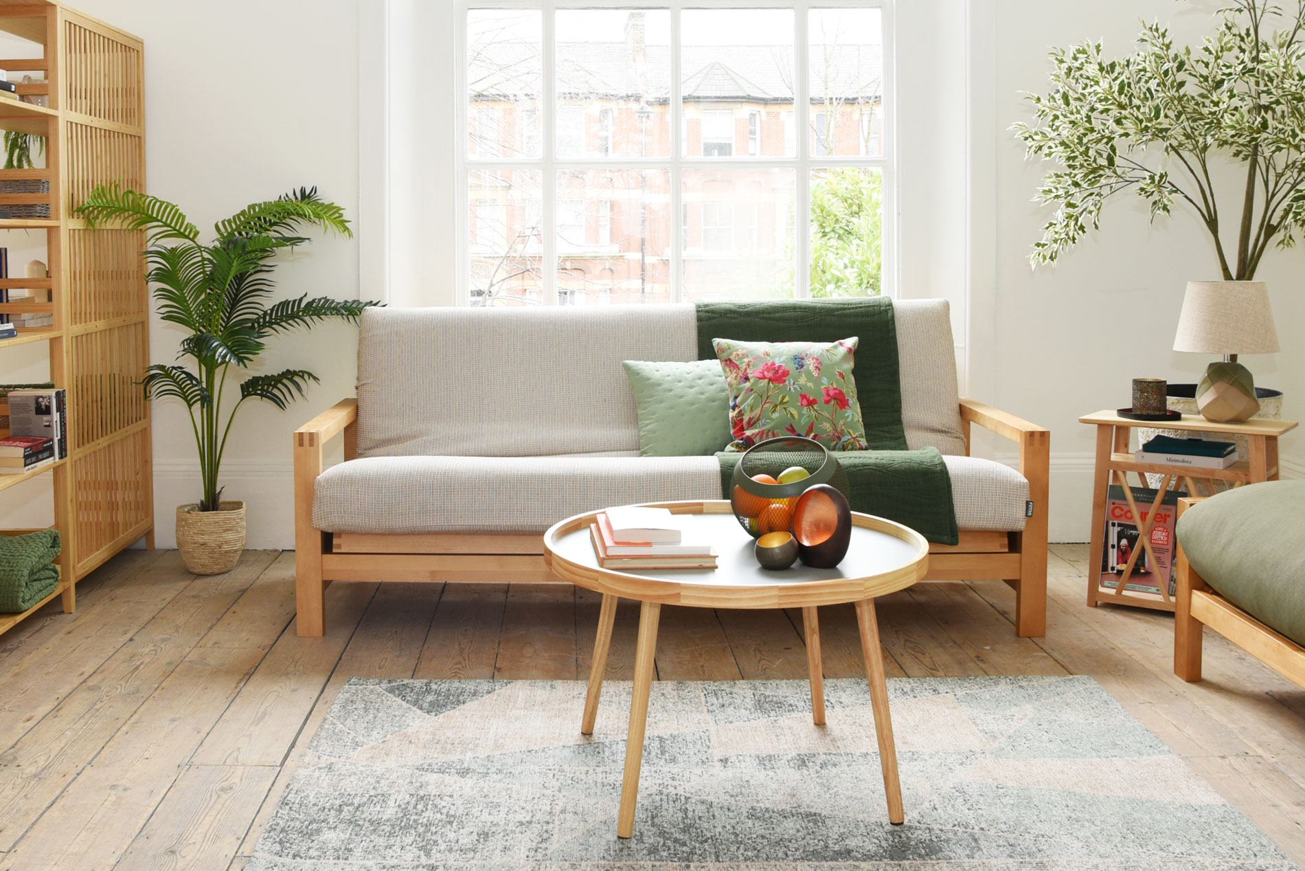 Quad 3 Seater Sofa Bed Birch - With its clean lines and sleek detailing, Quad is guaranteed to make a statement in any space. Constructed from robust birch with a simple conversion from 3 seat sofa to standard double bed in just 3 seconds, this easy to care for sofa bed is space saving living at its most stylish. Properly cared for, Quad will last you a lifetime. Our birch timber is carefully sourced and meticulously sorted to minimise the black flecks that naturally occur in this timber so that they will appear on the less visible surfaces.